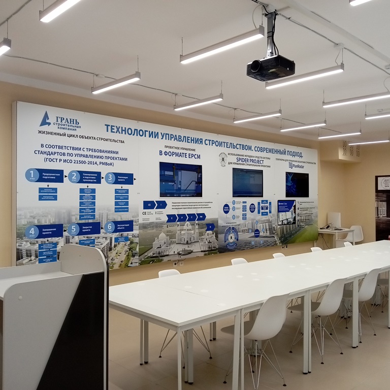 «Цифровизация» — в лаборатории представлено взаимодействие с крупными предприятиями строительной отрасли (индустриальными партнерами) в направлении цифровизации. Представлены ООО «Грань» - лидер в области проектного управления. В компании внедрена система управления дефектами в строительстве PlanRadar, которая используется для задач строительного контроля, охраны труда и проектным вопросам на строящихся объектах. Также партнерами КГАСУ являются: «Ак Барс Дом» — активно использует ТИМ-технологиии, представлена обучающая интерактивная программа, включающая все этапы «цифрового» строительства; «Брио», «Мобильные решения для строительства» - представили цифровые решения по строительному контролю. Пространство используется для дополнительного профессионального образования специалистов строительной отрасли.