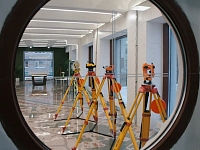 Локация 1. Представлены последние поколения геодезических приборов, которые используются для проведения геодезических замеров. Студенты отрабатывают навыки работы с геодезическим оборудованием.