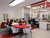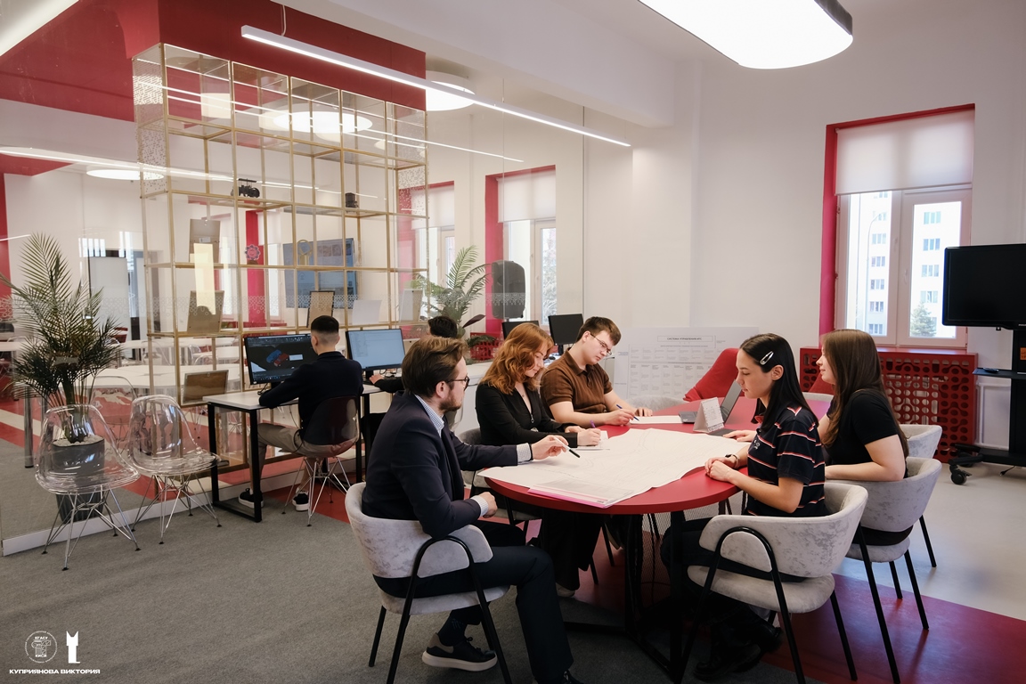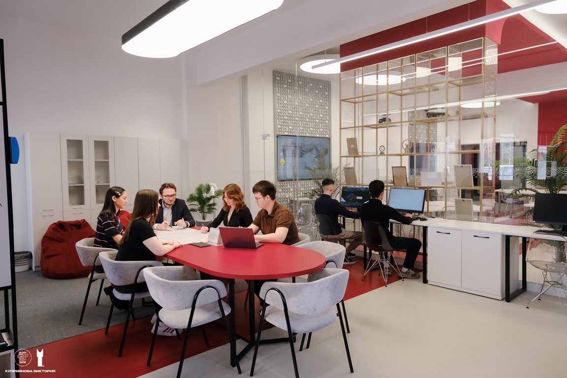 4-ая площадка – пространство для работы проектной группы из числа преподавателей, аспирантов и студентов, привлеченных специалистов. Представлена отдельной зоной для работы, переговоров и отдыха.