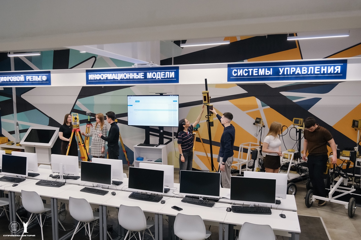 1-ая площадка – «Цифровой рельеф», здесь студенты и слушатели учатся работе с исходными данными до начала проектирования на геодезических приборах и специализированном ПО (Кредо, Робур, Индор);