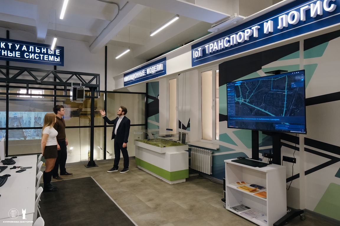 6-ая площадка – интернет вещей на транспорте и логистике. Представлены инструменты для создания умных устройств. Здесь студенты изучают возможности создания сети между транспортными средствами и оборудованием;